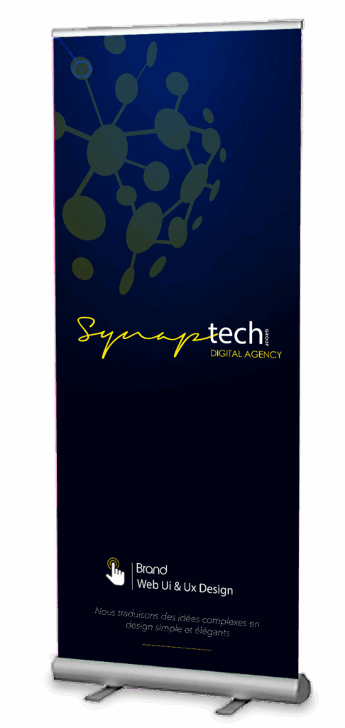 « Roll-up : l’allié puissant de vos événements ! Compact, pratique et impactant, il attire tous les regards et met en valeur votre message en un instant. Idéal pour vos salons, conférences, lancements ou stands, nos roll-ups combinent design soigné et visibilité maximale. Faites briller votre marque partout où vous allez ! »